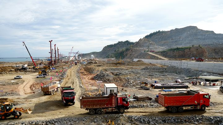 博賀新港區(qū)建設(shè)現(xiàn)場(chǎng)往來(lái)工程車輛川流不息,工地人員各司其職,各項(xiàng)工序有條不紊,處處展現(xiàn)出一派熱火朝天的建設(shè)景象。