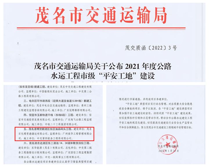 近日,茂名市交通運(yùn)輸局在全市公路水運(yùn)項(xiàng)目中部署開展平安工地建設(shè)考核工作。經(jīng)過層層遴選,茂名港博賀新港區(qū)東區(qū)油品碼頭工程再次被評為市級“平安工地”建設(shè)典型項(xiàng)目,連續(xù)兩年榮獲“平安工地”稱號!