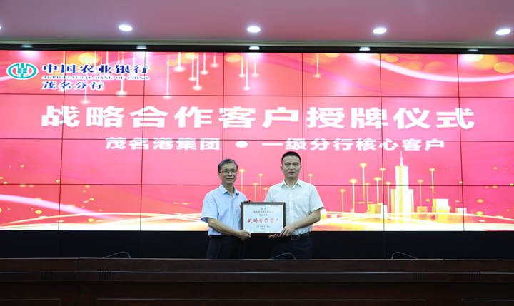 近日,茂名港集團成為中國農(nóng)業(yè)銀行“廣東省分行戰(zhàn)略合作客戶”,同時被認定為“一級分行級核心客戶”,是茂名市第一家得此殊榮的企業(yè)。此次授牌,是雙方多年緊密合作、互相支持的見證,體現(xiàn)了良好的互信關(guān)系,更標志著雙方合作將進入嶄新的階段。