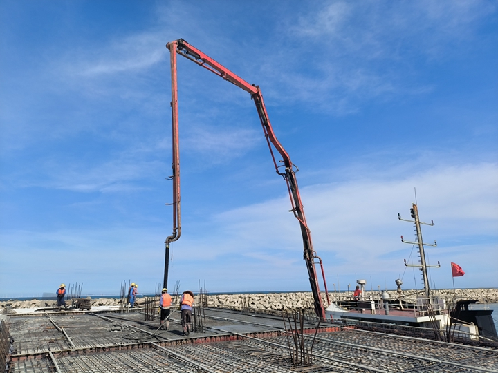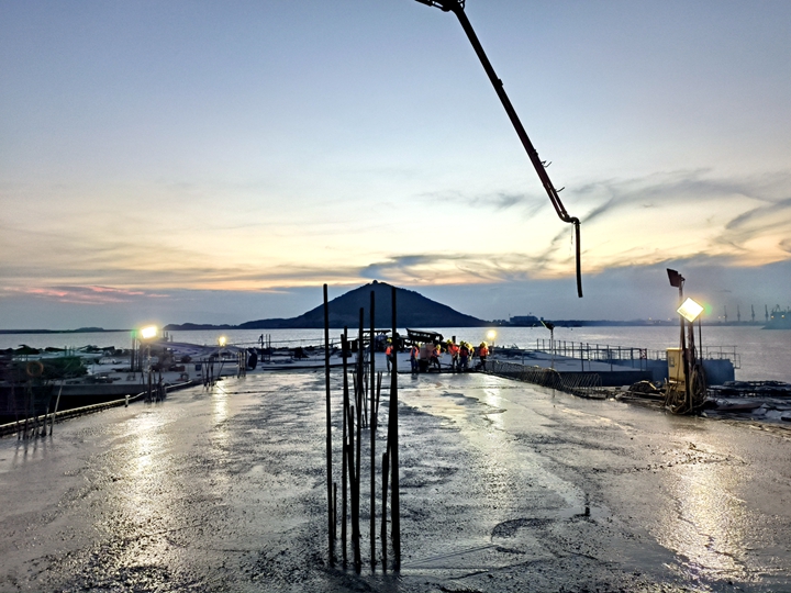 6月29日下午,茂名港博賀新港區(qū)東區(qū)油品碼頭工程水域公用管廊棧橋現(xiàn)澆面層完成澆筑,完成了油品碼頭項(xiàng)目公共管廊橋與碼頭全面貫通,實(shí)現(xiàn)了“海陸對接”,一舉貫通了博賀新港區(qū)的“大動(dòng)脈”。