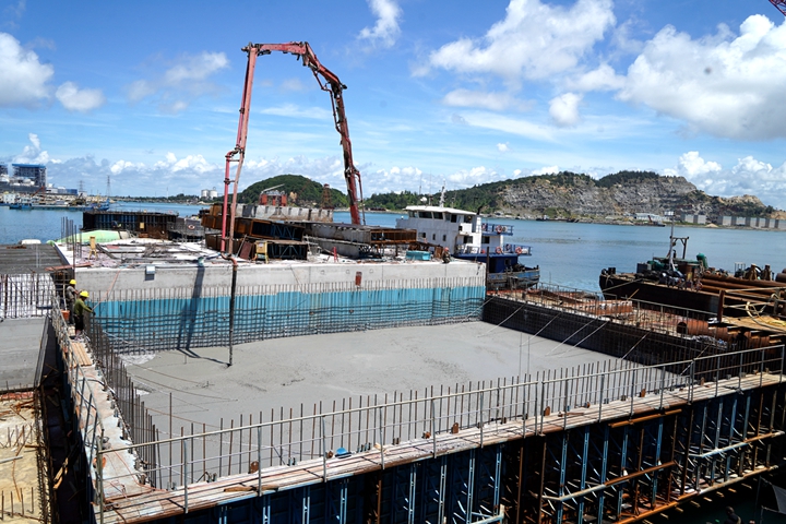 ▲東區(qū)化工碼頭項目胸墻澆筑作業(yè) 集團當(dāng)前在建的10萬噸級成品油碼頭、東區(qū)化工碼頭等碼頭泊位建設(shè)進入沖刺階段,認真貫徹市委市政府關(guān)于加快口岸開放工作的要求,計劃今年竣工驗收;茂名港務(wù)中心已完成主體結(jié)構(gòu)施工,計劃今年建成投用,將為濱海新區(qū)樹立嶄新地標(biāo);30萬噸級原油碼頭報批報建工作取得重大突破,項目岸線申請獲得國家交通運輸部批復(fù),前期工作不斷加快推進,即將進入實質(zhì)性實施階段,現(xiàn)代化深水大港的畫卷徐徐展開。 挖潛增效,劃轉(zhuǎn)老國企扭虧為盈,實現(xiàn)國有資產(chǎn)保值增值。