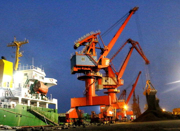 ▲港口經(jīng)營公司碼頭晝夜作業(yè)