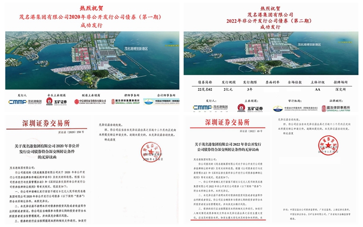 2014年,成功發(fā)行了5億元的中期票據(jù),首開茂名國企融資先河。2018年以來,獲深交所批準(zhǔn)發(fā)行非上市企業(yè)公司債19億元;截至2022年上半年,已成功發(fā)行四期共13億元非公開發(fā)行公司債券,創(chuàng)茂名市有史以來債券發(fā)行利率新低;2020年起,集團推動5個項目進入國家重大項目庫,成功爭取了5.42億政府專項債,切實保障項目建設(shè)資金需求,大大撬動博賀新港區(qū)重點項目建設(shè),為濱海新區(qū)前期發(fā)展打下堅實基礎(chǔ)。