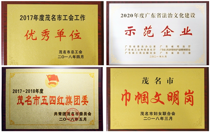 ▲集團榮譽獎牌(摘選) 幾年來,集團工會榮獲“茂名市工會工作優(yōu)秀單位”稱號,集團財務(wù)部女職工榮獲“茂名市巾幗文明崗”稱號;集團團委成立青年志愿者服務(wù)隊,助力雙創(chuàng)工作,連續(xù)三年榮獲“茂名市五四紅旗團委”稱號。集團憑借系列企業(yè)文化建設(shè)成果,先后榮獲 “中國企業(yè)文化建設(shè)典范企業(yè)”“廣東省先進集體”“廣東省優(yōu)秀企業(yè)”“廣東省企業(yè)文化建設(shè)最佳實踐單位”“廣東省法治文化建設(shè)示范企業(yè)”等榮譽,被譽為茂名市屬國有企業(yè)的標(biāo)桿與典范。 結(jié)語 十年積跬步,足下至千里;仨甑姆欠舱鞒,茂名港人矢志艱苦奮斗,勇于擔(dān)當(dāng)作為,爭當(dāng)茂名向海而興排頭兵,在茂名經(jīng)濟發(fā)展史上留下堅實的足印。