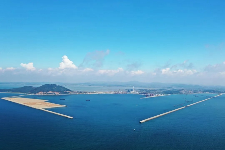 從灘涂到深水港,從藍(lán)圖到實(shí)景圖。路選對了,就不怕遙遠(yuǎn)。 2013年,隨著東閣嶺第一炮的炸響,東西兩條防波堤像巨臂一樣向海中延伸,圈出了茂名港人億噸大港的夢想。這一路,從零到有,從卡脖子到攻堅突圍,再到不斷刷新成績,一路艱難險阻,卻又步履堅定! 挺難的,從一無所有中起步,大家都是咬著牙砥礪向前的!绷鹤驷摶貞泟?cè)肼殨r在港區(qū)看到的畫面,退潮時都是灘涂爛泥,漲潮時便是一片淺海,要把漁民拉上腰的護(hù)服穿在身上才港下地勘測,以免一漲潮就成了“落湯雞”。在防波堤項(xiàng)目建設(shè)的過程中,梁祖釗發(fā)現(xiàn)港區(qū)起步施工基礎(chǔ)差,東閣嶺開山爆破難度大、所需拋石量巨大、工期緊實(shí)施人員少等種種困難,基本沒有可參考借鑒的港口建設(shè)管理經(jīng)驗(yàn)。實(shí)施人員少,那就一崗多責(zé),一個人分擔(dān)多個角色輪回轉(zhuǎn)軸;沒經(jīng)驗(yàn),那就摸著石頭過河,參考國家港口工程建設(shè)管理規(guī)定,一項(xiàng)一項(xiàng)按照最高要求制定施工計劃,系統(tǒng)部署、優(yōu)化調(diào)度東西防波堤各種有利資源,最大限度增加?xùn)|西防波堤的作業(yè)面和水拋力度,使防波堤日均水拋量從8000立方米提升至16000立方米,大大加快了施工進(jìn)展。他深耕項(xiàng)目建設(shè)一線,在集團(tuán)黨委的帶領(lǐng)下全過程參與完成項(xiàng)目設(shè)計方案審核、招投標(biāo)、合同談判、施工建設(shè)、交工驗(yàn)收等工作。終于,在2018年7月,外圍全長5423米東防波堤和全長3315米的西防波堤順利交工驗(yàn)收,兩堤如同巨臂環(huán)繞形成環(huán)抱式港池面積6平方公里,為茂名實(shí)現(xiàn)“億噸大港夢”奠定了堅實(shí)的基礎(chǔ),有力地助推茂名經(jīng)濟(jì)高質(zhì)量發(fā)展。