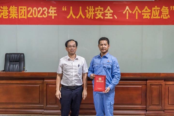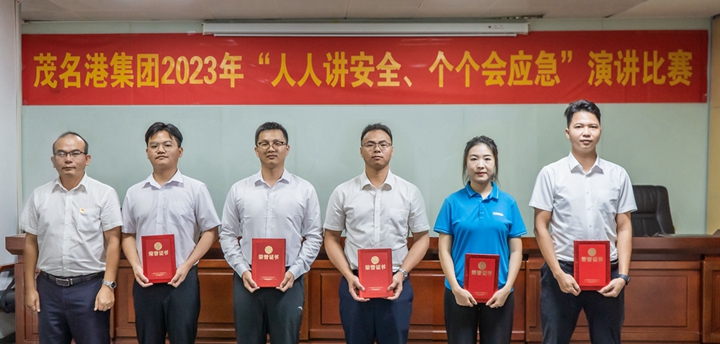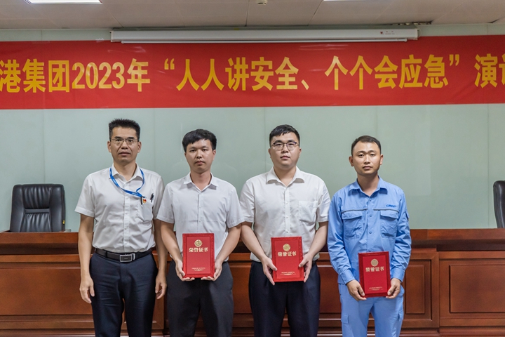 ▲長(zhǎng)興石化公司蔡升高、李俊毅、何雄勝,濱海控股公司江振好、港口經(jīng)營(yíng)公司張斯瑜榮獲三等獎(jiǎng) 比賽期間還進(jìn)行安全生產(chǎn)知識(shí)有獎(jiǎng)?chuàng)尨瓠h(huán)節(jié),觀眾積極踴躍舉手參與,現(xiàn)場(chǎng)氣氛激烈。 蔡光章對(duì)本次“人人講安全、個(gè)個(gè)會(huì)應(yīng)急”演講比賽給予充分肯定。他表示此次演講比賽選手立足本職崗位、結(jié)合工作實(shí)際,多角度多維度闡述對(duì)安全生產(chǎn)工作所感、所悟、所思,詮釋了安全生產(chǎn)的重要意義,營(yíng)造了“人人講安全、個(gè)個(gè)會(huì)應(yīng)急”濃厚氛圍。他強(qiáng)調(diào),集團(tuán)上下要樹牢安全理念,重視應(yīng)急管理,掌握應(yīng)急救援的基本流程、方法和要求,學(xué)會(huì)自救互救等本領(lǐng),切實(shí)提高突發(fā)事件預(yù)防和應(yīng)急處置能力,為集團(tuán)高質(zhì)量發(fā)展筑牢安全屏障。 本次比賽吸引了集團(tuán)機(jī)關(guān)各部室及下屬企業(yè)代表共50多人到現(xiàn)場(chǎng)觀賽聆聽。